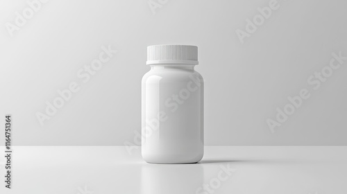 pill bottle with no labels, just a smooth, clean surface and a subtle reflection on the white background.