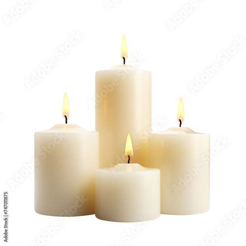 Pillar candles with flames illuminated, cut out
