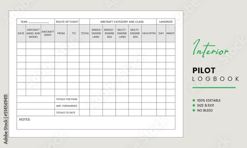 Pilot logbook kdp interior template design