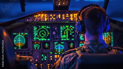 Pilot Night Flight Cockpit Controls Aviation Training