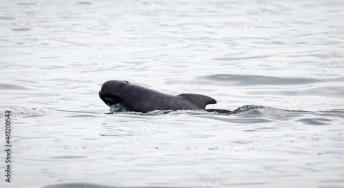 Pilot whale (Globicephala melas) breathing on the surface, Atlantic Ocean