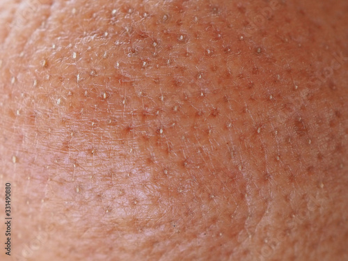 pimple on the chin in woman cause of oily skin and large pore using for skincare and cleansing or beauty product concept.