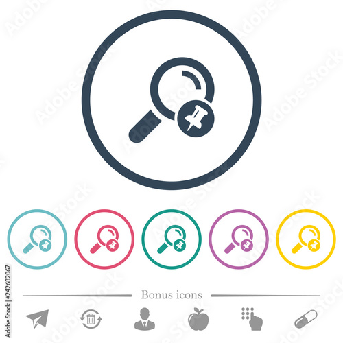 Pin search result flat color icons in round outlines