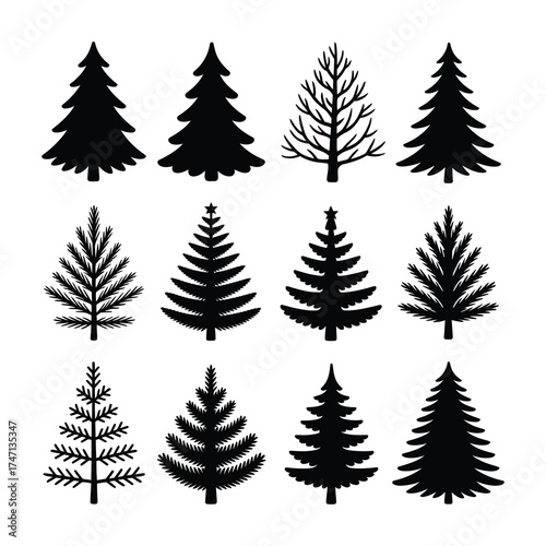 Pine and fir tree silhouette vector set evergreen forest christmas icons