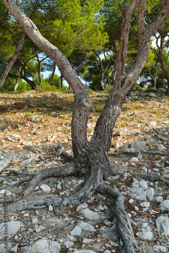 Pine Forest on Mediterranean Stone Coast in Summer, La Couronne, Martigues, Cote Bleue, Mediterranean Sea, Bouches-du-Rhone, Provence-Alpes-Cote d'Azur, France