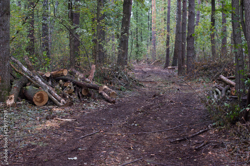 Pine stump, result of tree felling. Total deforestation, cut forest