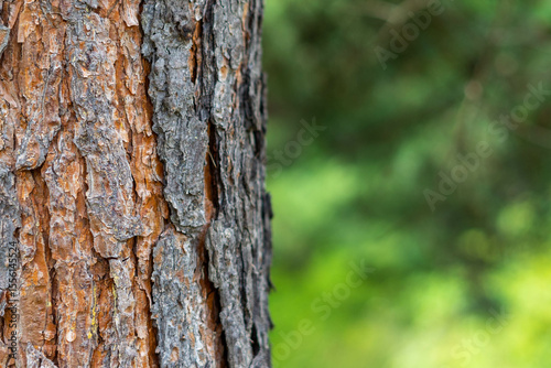 Pine tree bark (pinus sylvestris) close up shot, space for text.