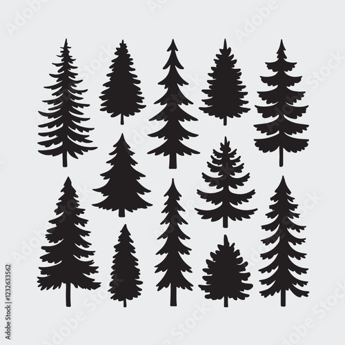 Pine Tree Set Silhouette