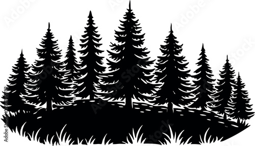 Pine tree silhouette collection on white background. Spruce tree silhouette set on white background