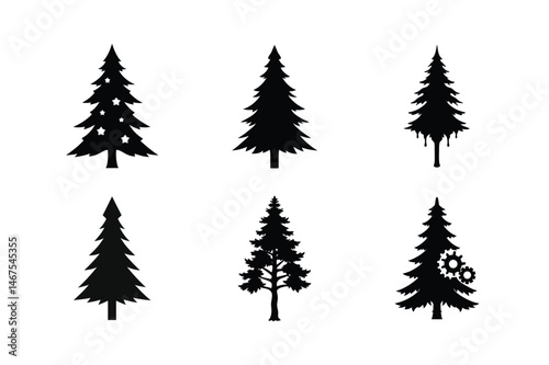 Pine Tree Silhouette Vector Illustrations Set- (3)