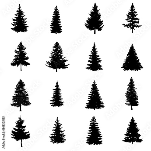 Pine Tree Silhouettes Set for Festive Winter Scenes. christmas trees set