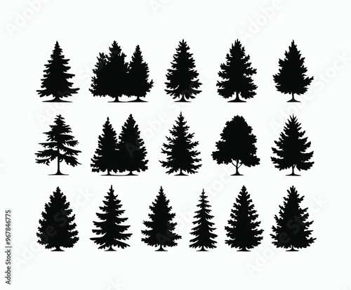 Pine trees silhouette EPS vector file illustration template