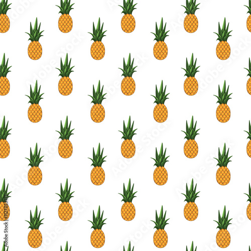 Pineapple seamless pattern on white background. Wrapping paper, gift card, poster, banner design. Home decor, modern textile print. Summer bright geometric fruits patterned.