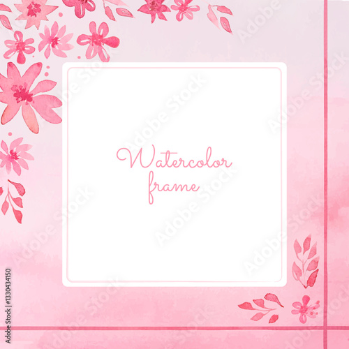pink watercolor background with pink flowers. Template greeting card.Vector illustrstion