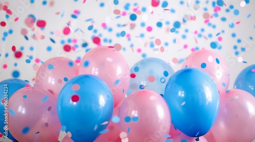 Pink and Blue Balloons with Confetti.