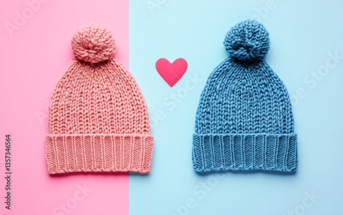 Pink and Blue Knit Hats with Heart Shape for Baby Shower Theme