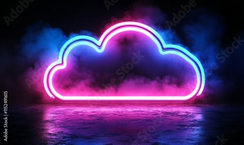 Pink and Blue Neon Light with Cloud Formation. Square shaped Fluorescent Frame in Dark Environment.