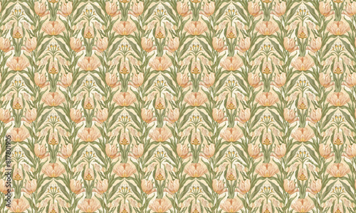 pink and green flower background, elegant pattern, mirror pattern, floral texture