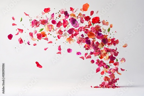 Pink and Red Flower Petals Falling on White Background - Floral Art Photography