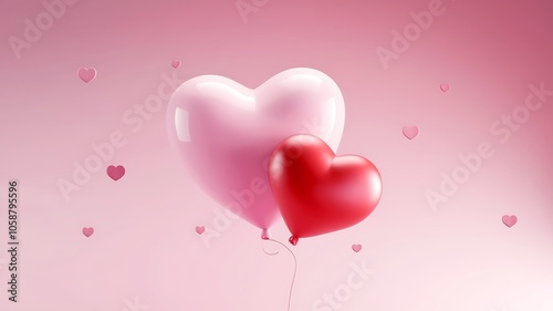 Pink and Red Heart-Shaped Balloons on a Pastel Pink Background
