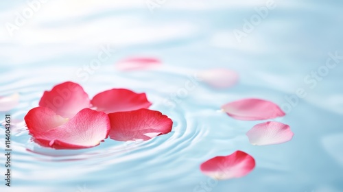 Pink and Red Rose Petals Floating on Tranquil Water with Soft Bokeh Background