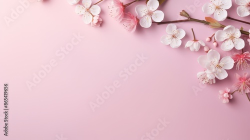 Pink and White Cherry Blossom Flowers on Pink Background