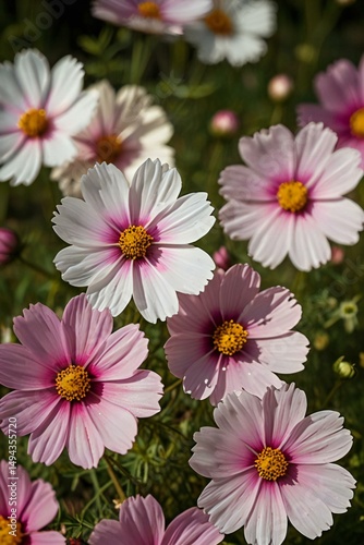 Pink and white daisy flowers blossom beautifully in a summer garden