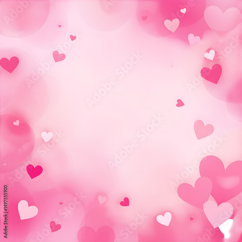 Pink and white hearts floating on a pink background with bokeh lights for a valentine's day card design isolated with white background