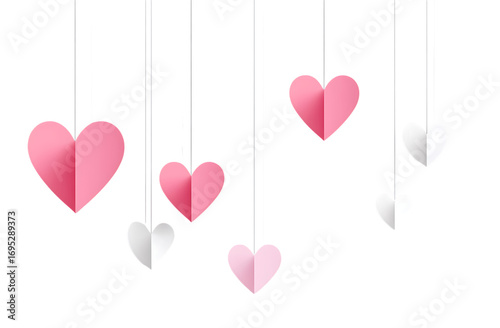 Pink and White Paper Hearts Hanging on Strings Against Black Background graphic 247cc8ba isolated on a transparent background