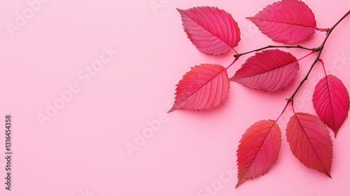 Pink Autumn Leaves Branch on Pastel Pink Background