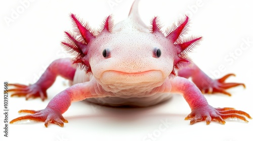 Pink axolotl on white background