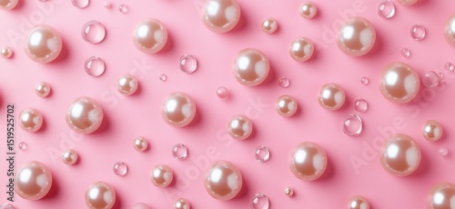 Pink background with scattered pearls and bubbles creating a luxurious aesthetic