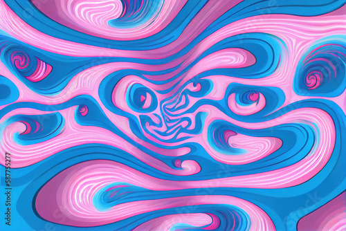 Pink Blue Abstract Retro Psychic Waves. Generative Ai