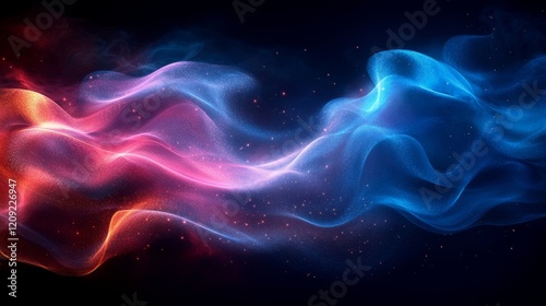Pink blue glowing gradient wave on dark background, vibrant noise texture header, Generative AI