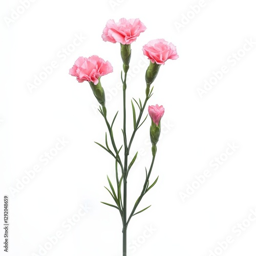 Pink Carnation flowers isolated on white background. Floral object, clipping path. Delicate carnation head flower, composition for advertising and packaging design. DOF, shallow depth of field