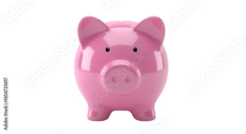 Pink ceramic piggy bank isolated on transparent background