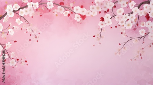 Pink Cherry blossom Illustration. Frame of Sakura Cherry Blossoms Spring flower