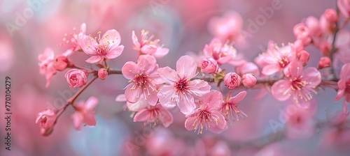 Pink cherry blossoms sakura floral branch. Generative AI technology.