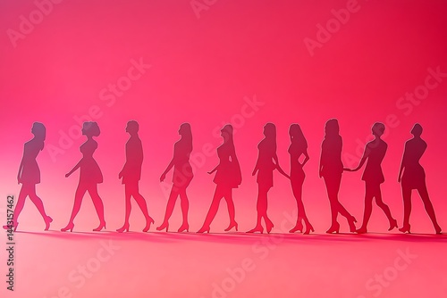 Pink Cutout Women Walking Row Background