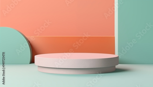 Pink Cylinder Podium on Pastel Green and Orange Background