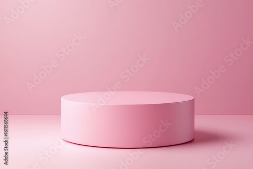 Pink Cylinder Podium Stage with Matching Pink Background in Minimalist Pastel Theme