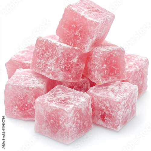 Pink Delicious Turkish Delight Cubes Isolated on a White Background