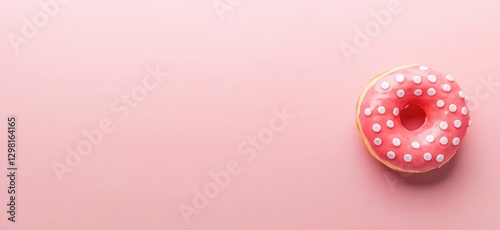 Pink donut with white sprinkles on a pink background. Sweet treat, dessert, confectionery, bakery, food photography