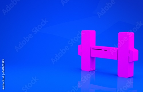Pink Dumbbell icon isolated on blue background. Muscle lifting icon, fitness barbell, gym, sports equipment, exercise bumbbell. Minimalism concept. 3d illustration. 3D render.