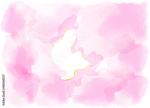 Pink Dusty rose and golden marble frame. Spring wedding invitation. Vector banner, watercolor