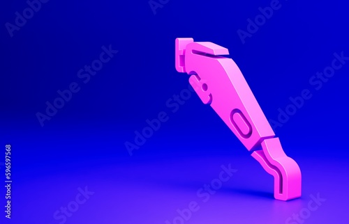 Pink Electrical hair clipper or shaver icon isolated on blue background. Barbershop symbol. Minimalism concept. 3D render illustration