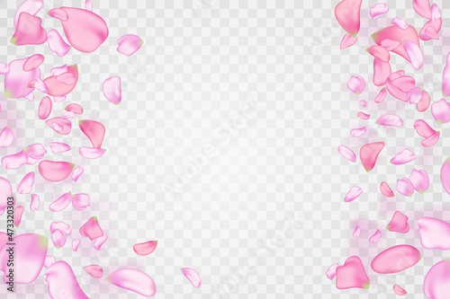 Pink falling sakura petals and flowers.Nature horizontal background.