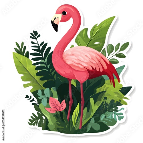 Pink Flamingo Bird in Tropical Jungle Illustration