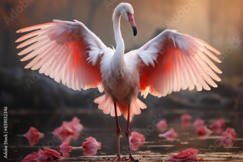 Pink flamingo in the misty forest. 3D illustration. Wildlife scene from nature.
