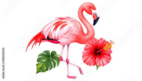 Pink flamingo isolated on white background